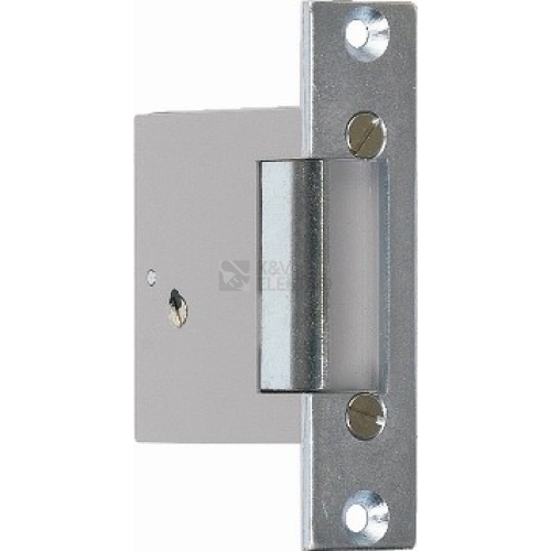 Standardní střídavý s aretací Elektrický zámek je určený pro otvírání jedno nebo dvoukřídlových dveří ze vzdáleného stanoviště (byt, kancelář, atd.). Uvolnění západky zámku může být provedeno tlačítkem domácího telefonu nebo zvláštním tlačítkem. Elektrický zámek 4FN 877 02 s aretací - s možnosti mechanického vyřazení zámku z funkce na určitou dobu pomocí páčky, která je umístěná z čelní strany zámku označená „b“ obr. 2. Obsluha: V místech, kde je montovaný domácí telefon a elektrický vrátný, návštěvník se ohlásí stlačením tlačítka, které je montované v blízkosti elektrického vrátného. Po signalizaci bzučáku domácího telefonu nebo zvonku volaný účastník vstoupí do hovoru zdvihnutím mikrotelefonu. Tímto je provedené oboustranné hovorové spojení mezi návštěvníkem a volaným účastníkem přes elektrický vrátný a domácí telefon. V případě, že volaný účastník chce vpustit návštěvu, stlačí tlačítko domácího telefonu označené klíčem a v tom okamžiku elektromagnet uvolní západku elektrického zámku. Po dobu bzučení elektrického zámku návštěvník odtlačí dveře. Při použití stejnosměrného proudu uslyší návštěvník pouze klepnutí kotvy a potom odtlačí dveře. V místech, kde není provedena montáž elektrického vrátného a domácího telefonu, se montuje zvonek sloužící pro ohlášení návštěvníka. Standardní střídavý s aretací Rozměry: 24x100x61 Napětí: 6-8V Proudové zatížení, střídavé: 0,6-0,8 A