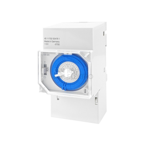Spínací hodiny analogové týdenní - s rezervou ( 100 h při 20°C), 3 mod., na TS lištu, 105x52,5x60, 230V, 50-60Hz, přík. 0,4W, min. rozsah spínání min. 2 h., přesnost +- 1,5 sek./den, IP 20, -5°C - +50°C, ochr. tř. II, 16A