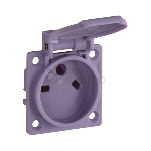 Zásuvka vestavná 24-48V fialová IP54 Zásuvka s víčkem. Termoplast Krytí: IP54 - ochrana proti stříkající vodě Barva: fialová Šroubové připojení Připojovací kabel zezadu i zespodu Dodáváno bez těsnění