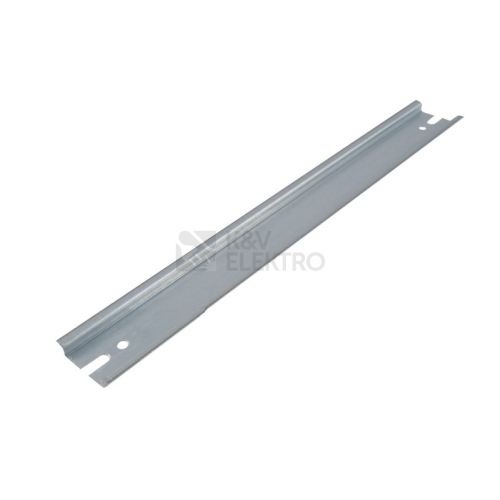 Lišta DIN TS35 ZN0.3 S, s výštipem, povrchová úprava Zn, Sendzimir. K připevnění přístrojů, jističů, stykačů, svorek atd. v rozváděčích nebo rozvodnicích. Na obou stranách má otvory a drážky pro přichycení na podložku.