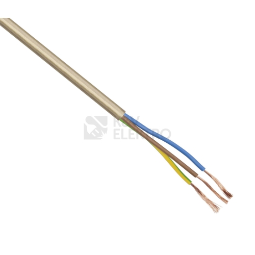 Ohebný PVC kabel do 300V v barevném zlatém provedení, s laněným měděným jádrem. Jako přívod pro moderní designová svítidla v suchých prostorách. ##VIDEO:https://www.youtube.com/embed/UoJHcLrT-QU## Konstrukce: Lankový, měděný vodič. Izolovaný PVC (Polyvinylchlorid).. Plášť z barveného PVC (Polyvinylchloridu) v kulatém provedení Teplotní rozsah: od -5°C do +70°C Jmenovité napětí: 300/300V