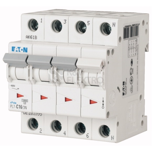 Jističe vedení PL7, 3 póly + N, Tripping Characteristic: D, Rated current In: 13 A, Rated switching capacity (IEC/EN 60947-2): 10 kA, Spínací přístroje pro bytovou výstavbu a účelové stavby