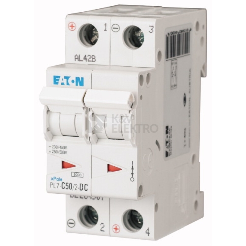 Jističe vedení PL7, 2-pólové, Tripping Characteristic: C, Rated current In: 50 A, Rated switching capacity (IEC/EN 60947-2): 10 kA, Spínací přístroje pro stejnosměrný proud