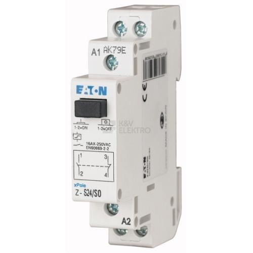Impulsní relé, řídicí napětí 24V AC / 12V DC Impulzní relé (paměťové) pro spínání a vypínání obvodů osvětlení, klimatizace, vytápění apod. Ovládání impulzem, například běžnými instalačními tlačítky. Každým impulzem dochází ke změně stavu kontaktů relé. • Funkce: 1 spínací kontakt, 1 rozpínací kontakt • Jmenovitý povozní proud při 250V AC podle IEC/EN 60669-2-2: 16A • Vestavný rozměr víčka 45 mm, šířka při montáži 1HP (17,5 mm), montáž na montážní lištu, průřez svorky 0,5–10 mm² jednodrátový a vícedrátový / 0,5–6 mm² lankový s dutinkou Impulzní relé Z-S • Relé pro impulzní ovládání elektrických spotřebičů • Splňuje požadavky normy ČSN EN 60669 • Rozměrově kompatibilní s ostatními instalačními přístroji • Proud procházející paralelně zapojenými signálními doutnavkami tlačítek je nutné kompenzovat paralelně zapojeným kompenzačním blokem kondenzátorů Z-S/KO Bezpečnost: • Možnost ruční aktivace spínací polohy tlačítkem • Všechny svorky (cívka i kontakty) mají ochrannou posuvnou clonku zabraňující připojení vodičů pod svorku • Vyrobeno z nehořlavých materiálů neobsahujících chlór ani halogeny Výhody: • Nízká provozní hlučnost • Snadné připojení vodičů díky dostatečně dimenzovaným svorkám, které jsou dodávány v otevřeném stavu • Jednoduchá montáž na přístrojovou lištu 35mm • Široká nabídka konfigurace kontaktů O výrobci Eaton Společnost Eaton zahájila svou působnost v České republice v roce 1993 pod názvem Felton & Guileaume. Ten v roce 1998 převzal koncern Moeller GmbH. V roce 2008 proběhla akvizice společnosti a o rok později i přejmenování z Moeller na Eaton. Stále ale zůstává renomovaným specialistou v oboru domovních přístrojů a průmyslové elektroinstalace i přístrojů pro jištění a distribuci elektrické energie. Jejich přístroje jsou mnoho let stejné a oblíbené. Z jejich nabídky můžete vybírat ze široké škály jističů, proudových chráničů, rozvodnic a rozvaděčů a stykačů Eaton. Také u nás naleznete kvalitní motorové spouštěče Eaton. Objevte i vy kvalitu produktů a služeb výrobce Eaton Elektrotechnika, s.r.o.