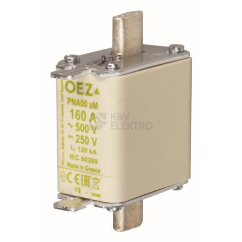 Un AC 500 V / DC 250 V, velikost 00, aM - charakteristika motorová pouze proti zkratu, Cd/Pb free
