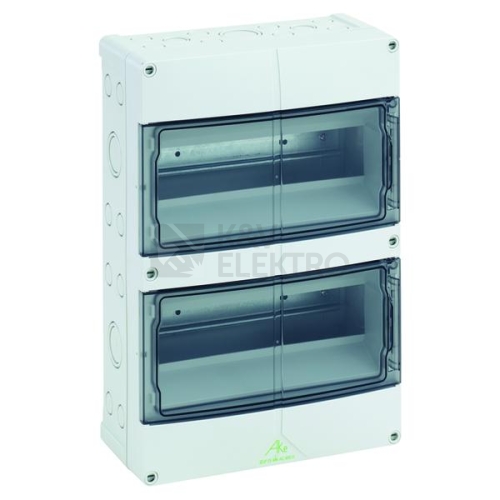 Malý rozvaděč, se stupněm krytí IP55, 2 Řady, 12 modulů, dimenzované provozní napětí: 400V AC, dimenzované izolační napětí: 690V AC, 690V DC, nahoře a dole metrické prolisy pro univerzální vstup vodičů se šroubením, DMS a / nebo stupňovitými vývodkami, s upínací lištou PE/N vždy se 2 místy upnutí 16mm² a 14 místy upnutí 6mm², Rozměry: 250 x 370 x 122mm, Přiložené příslušenství: Stupňovitá vývodka: 10x M20, 1x M32, uzavírací zátka, krycí a popisovací proužek