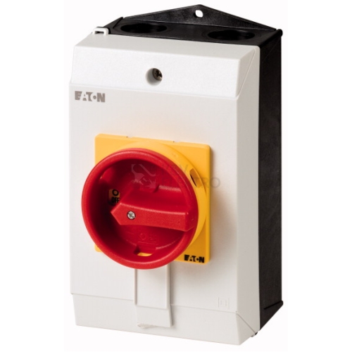 Bezpečnostní vypínače s výstražným štítkem podle normy IEC/EN 60947-3, 690V/25A, skříňka pro povrchovou montáž z izolačního materiálu, stupeň krytí IP65, rukojeť červená s blokovacím věncem žlutým, uzamykatelný v nulové poloze 3 visacími zámky projektování: Vypínače pro údržbu a opravy a bezpečnostní vypínače mají stejnou elektrickou funkci. Během provádění údržby nebo oprav máte bezpečně odpojit od elektrické sítě elektrické zařízení (spotřebič) a máte zabránit ohrožení osob, stroje a výrobního materiálu.Bezpečnostní vypínač je přídavný zapouzdřený hlavní vypínač = oddělovací vypínač jednoho jediného elektrického spotřebiče, který je namontován v bezprostřední blízkosti motoru nebo elektrického spotřebiče. Má umožnit bezpečnou práci v souladu s normou DIN EN 50110/VDE 0105 . To je zvlášť důležité, pokud nelze vyloučit záměnu hlavního vypínače. Oddělovací vylínače P1 jsou velmi kompaktní a robustně stavěné. Ruční pohon působí na kontakty v přímém spojení. Při vypnutí se kontakty nuceně otevřou.