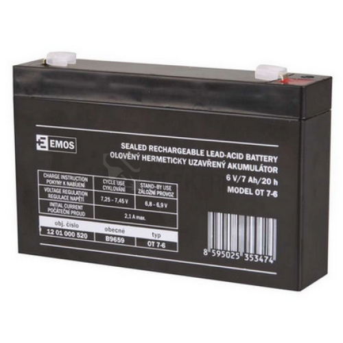 Akumulátor EMOS je vhodný jako náhradní baterie pro záložní zdroje UPS, RBC kity, elektronické systémy - EZS, EPS, dětské vozítka apod. Bezúdržbový, ventilem řízený olověný akumulátor v provedení AGM umožňuje být používán v libovolné poloze. Optimální životnost v záložních systémech je 5 let.