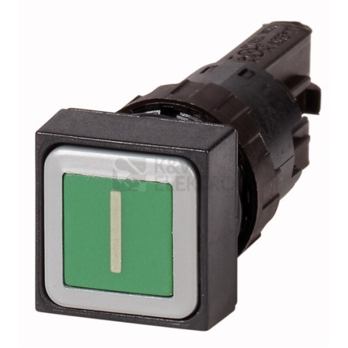 Tlačítko RMQ16 připravené k použití s rozměrem čelní strany 18x18 mm. Vhodné kontaktní bloky je třeba objednat samostatně.