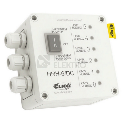 Přehledná indikace výšky hladiny šesti LED kontrolkami na panelu přístroje. Nastavitelné časové zpoždění - eliminace pohybu hladiny, např. při plnění nádrže. Nastavitelné zpoždění (0,5-10s). TECHNICKÉ PARAMETRY Univerzální napájecí napětí AC/DC 12 – 24 V nebo AC 230 V. Výstupní kontakt: 1x spínací 10 A (AgNi). Nastavení citlivosti podle vodivosti kapaliny: 5-100 k?. Krytí IP 65.Hladinový spínač v krabici s krytím IP65 hlídá minimální a maximální výšku hladiny, a také zobrazuje jeji aktuální stav. Použití je vhodné pro jímky, studny, nádrže nebo hasičské vozy. POPIS Možnost volby z 2 funkcí – hlídání minimální a maximální výšky hladiny, nebo udržování výšky hladiny. Volba funkce – napouštění/off/vypouštění. Přístroj hlídá 5 úrovní hladiny pomocí 6 sond (poslední je společná). Možnost připojení přídavné signalizace (např. u řidiče hasičského vozu).