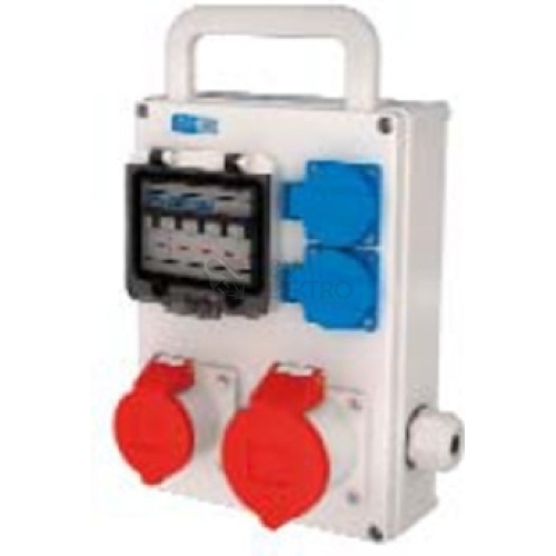 Zásuvková kombinace SJ 51 013.01 (pouzdro 61402) materiál pouzdra: vysoce odolný plast, chráněno proti stříkající vodě IP44, prodrátováno, zásuvky s ochranným kolíkem, každá kombinace vybavena standardně připojovací svorkovnicí Werit 5 x 25 mm2 velikost pouzdra: 276x184 pod víkem může být namontováno max. 9modulů 1 CEE zásuvka 16A 400V 5p 2 zásuvky s ochranným kolíkem 16A 230V 1 jistič char.C 16A 3p 2 jističe char.B 16A 1p 1 svorkovnice 5 × 25 mm2 přívod vedení: 1 × M 25 nahoře (otevřený) 1 × M 25 dole (zavřený)