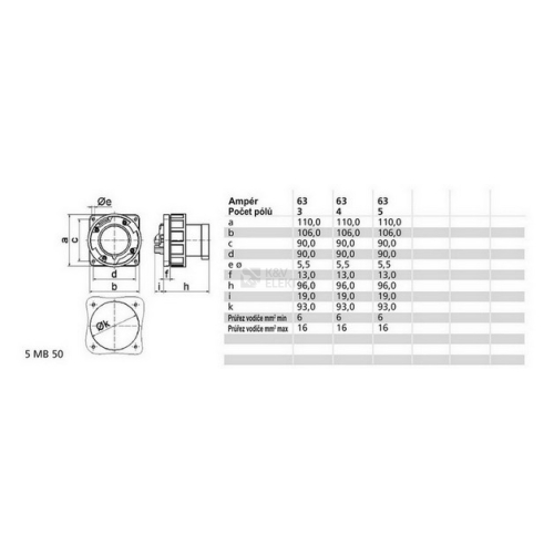 CEE přívodka vestavná přímá63A 4p (3P+PE) 400V (380 do 415V~) 6h IP67 frekvence: 50 a 60Hz kód barvy: červená RAL 3000 kontakty: nosič kontaktů je vyroben z materiálu odolného vůči vysokým teplotám, kontakty jsou vyrobeny z mosazi, povrch kontaktů je poniklovaný maximální průřez vodiče: 16,0 mm2materiál krytu: polyamid způsob připojení: šroubová rámová svorka barva: límec červený, bajonetový uzávěr šedý, kryt šedý rozměry: výška 113.5 mm, šířka 113.5 mm, hloubka 114 mm rozměr příruby: svisle 110 mm, vodorovně 106 mm rozteč montážních otvorů: vodorovně 90 mm, svisle 90 mm další technické vlastnosti:límec umístěn uprostřed příruby