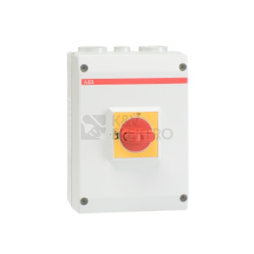 Odpínač v krabici OTP63BA3M (1SCA022401R3780). Žluto-červená uzamykatelná rukojeť s indikací 0-I a ON-OFF, N- a P - svorky. Technické parametry: Počet polů: 3 Jmenovitý proud: 63 A Jmenovité napětí: 690 V Rozměry: 145x200x90 mm