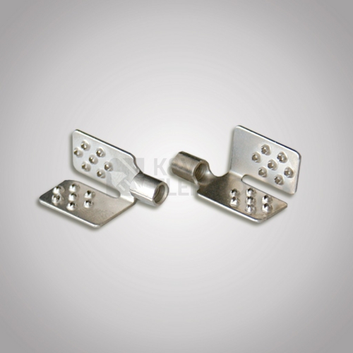 Připojovací konektor pro všechny typy folií Do dutinky konektoru se vloží odizolovaný konec připojovacího vodiče a zalisuje pomocí lisovacích kleští. Pozor, dutinka konektoru má průměr 3mm, připojovací vodiče mají průměr 1,5mm - jde-li o krajní konektor s jedním vodičem, vodič se přeloží, aby se zdvojnásobil jeho průměr. Do konektorů na vnitřních pásech folie se vkládájí vodiče dva, spirálově stočené. Konektor s nalisovaným vodičem se umístí na střed měděného pásku (sběrnice) topné folie a tlakem prstů uzavře. Definitivní zalisování a zajištění polohy se provede pomocí lisovacích kleští. Vždy se nejdříve lisuje připojovací vodič do dutinky konektoru a následně konektor na folii, nikdy obráceně.