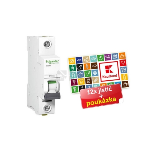 Acti 9 iC60 - Modulární jističe - PROMO Součástí balení tzn. 12ks přístroje je 100Kč poukaz Kaufland/Albert na nákup zboží ZDARMA!   Díky jedinečným funkcím jsou jističe Acti 9 iC60 vybavené pro zajištění absolutní bezpečnosti a lepší kontinuity provozu. VISI-SAFE: pro bezpečný provoz a údržbu elektrické instalace. Třída ochrany II: trvalá bezpečnost obsluhy i nekvalifikovaných osob. VisiTrip: rychlá detekce vývodů jističů s poruchou a zkrácení doby provozních zásahů. Chráničové spouště typu SI s nejvyšší imunitou: lepší kontinuita provozu, zejména ve znečištěných prostředích a sítích. Jmenovitý proud: 1 až 63 A Velký výběr vypínacích schopností až do 100 kA a vypínacích charakteristik: B, C, D, Shoda s normami IEC/EN 60898 nebo IEC/EN 60947-2, Úplná koordinace s proudovými chrániči Acti 9 a kompaktními jističi Compact NSX. Vhodné pro bezpečné odpojení dle průmyslové normy IEC 60947 Provozní napětí: až do 440 V AC, izolační napětí: 500 V Přídavné chráničové spouště: iC60 Vigi, Volitelné příslušenství: indikace stavu a vypnutí, vypínací spouště podpěťové spouště, napěťové spouště.
