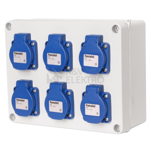 Krabice 3066 IP54 6x230V s ochr. kolíkem, 235x182x95mm, hladké bokyZásuvková krabice s hladkými boky v krytí IP54, rychlá a jednoduchá montáž, odolnost proti mechanickým nárazům IK08, pro nástěnnou montáž (na omítku), barva šedá, samozhášivý, bezhalogenní UV odolný materiál, s připojovací svorkovnicí, otvory do krabice se provádějí vyvrtáním otvoru a následně se osadí vývodka (např. plastová šroubová M16). Splňuje požadavky norem ČSN EN 60670-22, zkouška žhavou smyčkou 650°C (pro montáž na hořlavé podklady doporučujeme použití nehořlavé podložky), pro rozsah teplot od -25°C do +85°C.