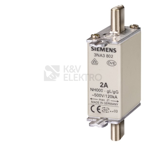 Pojistková vložka nožová NH s kovovými vodivými úchyty a horním ukazatelem stavu, vel. 000, In=125A gG, AC 500V/DC 250V