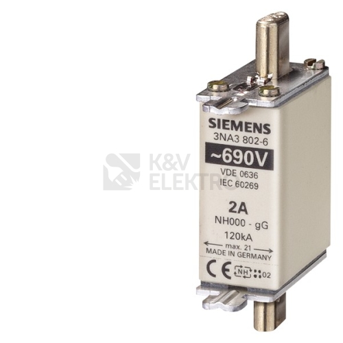 Pojistková vložka nožová NH s kovovými vodivými úchyty a horním ukazatelem stavu, vel. 000, In=25A gL/gG, AC 690V/DC 250V