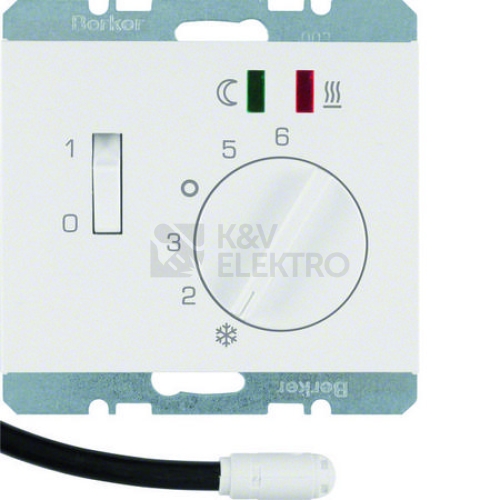 Regulátor, podlahového vytápění se spínacím kontaktem, centrálním dílem a vypínačem, Berker K.1, bílá, lesk