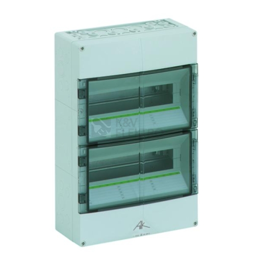 Rozvaděč pro automatizaci, se stupněm krytí IP65, 2 Řady, 28 modulů, nahoře a dole metrické předlisy pro univerzální vstup vodičů se šroubením a / nebo dvojitými membránovými vývodkami, nahoře s předmontovanými pružnými průchodkami DMS M20, s bezšroubovou upínací lištou PE/N vždy se 6 šroubovými místy upnutí 2,5-16mm² a 21 /2x14 bezšroubovými místy upnutí 1,5-4mm², Rozměry: 300 x 450 x 142mm, Přiložené příslušenství: Dvojitá membránová vývodka, Zaslepovací zátky, Krycí a popisovací pásky