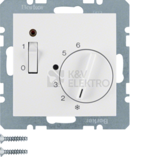 Termostat, pokojový se spínacím kontaktem, centrálním dílem, vypínačem a LED, Berker S.1/B.x, bílá, mat