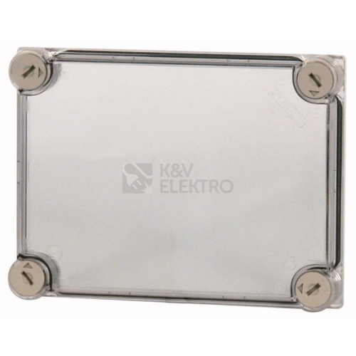 Kryt transparentní, stupeň krytí IP65, patentované upevňovací šrouby víka s integrovaným vyrovnáním přetlaku, upevňovací šrouby s možností plombování, průchozí zapěněné těsnění, vestavná hloubka s montážním plechem=125 mm, použitelný pro dolní díly CI E, X a V, provedení uzávěrů: ovládání pomocí nástroje (nepřístupné pro laiky)