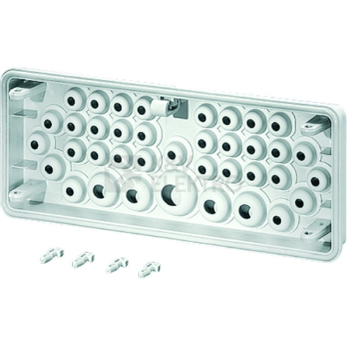 Montážní příruba s těsnicími membránami pro přívod kabelu, 29 x průměr 7-12 mm, 4 x průměr 7-14 mm, 4 x průměr 11-20 mm, 1 x průměr 16-29 mm pro stěny skříně 300 mm.