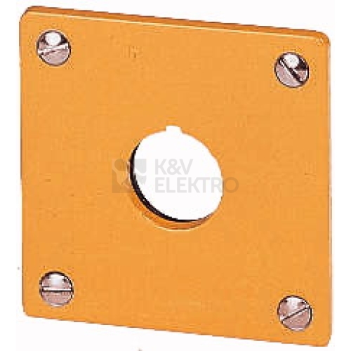 Zapuštěná montážní deska hliníková, žlutě lakovaná na tlačítko Nouze vypnout., systém RMQ, průměr při montáži 22,3 mm, stupeň krytí IP54, montážní místo 1