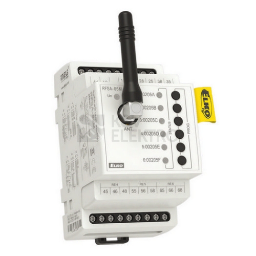 Spínací prvek se 6 výstupními kanály slouží pro nezávislé ovládání až 6 spotřebičů, zásuvek nebo světel. POPIS Integrované přepínací kontakty umožňují zapojení, kdy ovládaný spotřebič může být povelem z ovladače sepnut nebo rozepnut. Je vhodný také pro vytváření scén, kdy jedním stiskem ovladače sepnete/vypnete všech 6 kanálů najednou. Každý z kanálů může být ovládán až 32 kanály (1 kanál představuje jedno tlačítko na ovladači). Prvky je možné kombinovat s Ovladači nebo Systémovými prvky iNELS RF Control. Funkce: Tlačítko, impulsní relé a časové funkce zpožděného rozběhu a návratu s časovým nastavením 2s – 60 minut. Časové funkce zpožděného rozběhu a návratu lze nastavit pro každý kanál nezávisle na sobě. V případě umístění prvku do plechového rozvaděče použijte pro zlepšení průchodu signálu externí anténu AN-E. TECHNICKÉ PARAMETRY Napájecí napětí AC 110 - 230 nebo AC/DC 12 – 24 V. Dosah 200m (volné prostranství), v případě nedostatečného signálu mezi ovladačem a prvkem použijte opakovač signálu RFRP-20. Výstupní kontakt: 3x přepínací a 3x spínací 8 A (AgSnO2, 6x2000 VA/AC1). Komunikační frekvence (868MHz, 866MHz, 916MHz, 922MHz) s obousměrným protokolem RFIO nebo RFIO2. RFIO2 je inovovaný bezdrátový komunikační protokol systému iNELS RF Control, který přináší větší stabilitu a eliminuje kolizi signálů mezi jednotlivými prvky. V provedení 3-MODUL, upevnění na DIN lištu.