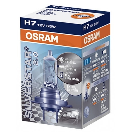 Vynikající světelné vlastnosti, úspornost, kvalita zpracování činí z prémiové autožárovky H7 OSRAM ideální osvětlení pro vaše vozidlo. Halogenová žárovka OSRAM díky svým vlastnostem poskytne komfort při jízdě díky chladnějšímu světlu, zvýšené intenzitě až o 60% i o 20 m delšímu světelnému kuželu. Díky tomu je také autožárovka OSRAM Slivestar skvělým bezpečnostním prvkem a skvěle vypadá. Oceníte ji na dlouhých nočních cestách, kdy je třeba zvýšené koncentrace a soustředění se na jízdu. Díky modernímu vzhledu a vynikajícím světelným vlastnostem dodá vašemu vozidlu šmrnc. Porovnejte produkt s dalšími autožárovkami H7. Podívejte se také na kompletní sortiment Autožárovek a další produkty od značky OSRAM.