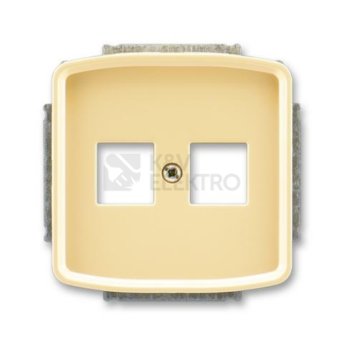 Kryt zásuvky komunikační s plochým designem S upevňovacím třmenem. Pro upevnění dvou komunikačních zásuvek typu Modular-Jack (keystone), záslepek nebo reproduktorových svorek bez použití nosné masky. Rozměry otvorů: 19,4 × 14,8 mm Design: Tango Barva: béžová