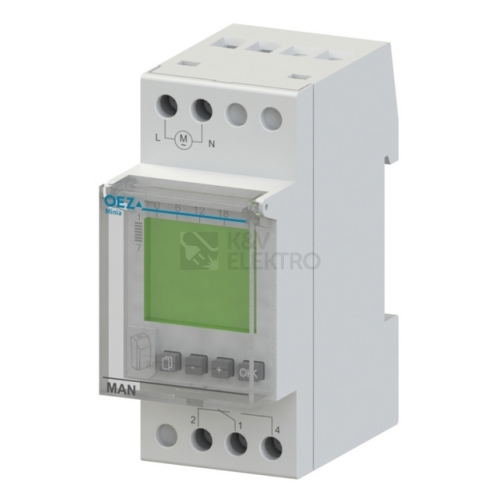 In 16 A, Uc AC 230 V, 1x přepínací kontakt, týdenní program, 1 kanál, jazyk CS, EN, DE, PL, RU, IT, FR, ES, PT, NL, DA, FI, NO, SV, TR, záloha chodu, náhrada za MAR