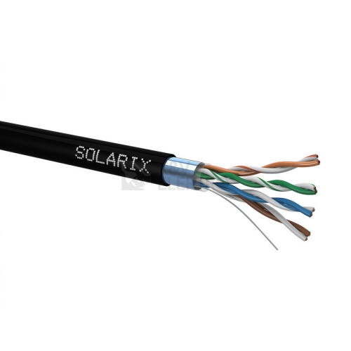 Venkovní stíněný kabel CAT5E s polyethylenovým pláštěm a třídou reakce na oheň Fca Instalační kabel s označením SXKD-5E-FTP-PE je venkovní stíněný kabel CAT5E s polyethylenovým pláštěm. Kabel je určen pro náročnější instalace, kde běžný datový kabel s PVC nebo LSOH pláštěm neposkytuje dostatečnou ochranu proti vlivům okolního prostředí. Prodej po metrech, maximální možná délka prodejní délka vcelku tohoto FTP kabelu je 305 metrů = celý box. Společně s ostatními komponenty systému strukturované kabeláže Solarix vytváří řešení, které zaručuje dlouhou životnost, maximální výkon a bezproblémový chod počítačové sítě. Instalační kabely Solarix – kategorie 5E jsou určeny pro horizontální rozvody. Při instalaci do země doporučujeme vždy použít HDPE chráničku.
