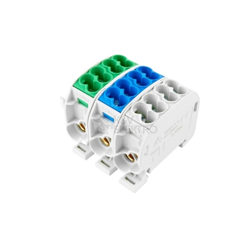 Rozbočovací svorka krytá, šedá/modrá/zelená, 3 pol. , řaditelná, bal. 1 ks, vstup:6x25mm2, výstup 6x16mm2 š x v x h : 60,8x43,5x59,5 , vestavná šířka: 53,8 mm (3 mod.)