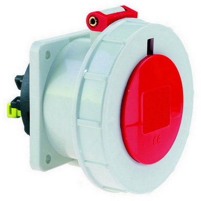 CEE zásuvka vestavná přímá, Quick-Connect32A 5p (3P+N+PE) 400V (200/346 do 240/415V~) 6h IP67 frekvence: 50 a 60Hz kód barvy: červená RAL 3000 kontakty: nosič kontaktů je vyroben z polyamidu, kontakty jsou vyrobeny z mosazi maximální průřez vodiče: 10,0 mm2materiál krytu: polyamid způsob připojení: bezšroubové pružinové klecové svorkybarva: víčko sklopné červené, bajonetový uzávěr šedý, kryt šedý rozměry: výška 105 mm, šířka 101 mm, hloubka 110 mm rozměr příruby: svisle 75 mm, vodorovně 75 mm rozteč montážních otvorů: vodorovně 60 mm, svisle 60 mmdalší technické vlastnosti:bezšroubové připojení vodičů QUICK-CONNECT je ověřený, trvanlivý, bezpečný a zcela bezúdržbový systém odolný proti nárazům, vibracím a výkyvům teplot. QUICK-CONNECT s optimálně nastaveným přítlakem svorky na připojovaný vodič zcela eliminuje nedostatky šroubových spojení (možnost přetažení, nebo nedotažení šroubků, slaněné vodiče není třeba ukončovat dutinkami)barevné označení vstupů, pro správné zapojení jednotlivých vodičů (dodržení sledu fází u třífázové elektrické soustavy)