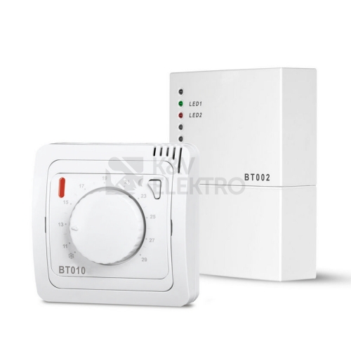 Bezdrátový termostat renomované značky Elektrobock si zamilujete pro jeho kvalitní a jednoduché provedení. Vlastnosti bezdrátového termostatu BPT012: Díky jednoduchému ovládacímu prvku a spolehlivé obousměrné komunikaci je BPT012 tou nejlepší náhradou klasického bimetalového termostatu. Vyšší komfort ovládání, moderní design a montáž bez sekání zdí a tažení vodičů jsou další přednosti, které Vás přesvědčí o modernizaci regulace Vašeho topného systému. TECHNICKÉ PARAMETRY Příjimač Napájení 230 V/ 50 Hz Max.spínaný proud 16A Spínací prvek relé Dosah 35 m (v zástavbě) Pracovní teplota 0°C až +40°C Vysílač Napájení 2 x 1,5 V alkal. AA Typ komunikace OBOUSMĚRNÁ Frekvence 433,92 MHz Vf výkon < 10 mW Hystereze 0,4°C Rozsah nastav. teplot +11°C až +29°C Nastavení teplot po 1°C (od 11°C) Přesnost měření ±1°C Životnost baterie až 5 let podle typu baterie Stupeň krytí IP20 Pracovní teplota 0°C až +40°C Dosah sestavy může být až 35 m v rámci dvou patra, maximálně však přes dvě zdi. Na volné ploše může dosáhnout až 200m. Podívejte se i na další termostaty Electrobock a ostatní termostaty z naší nabídky.