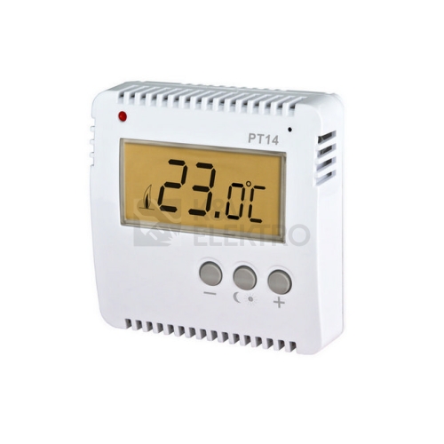 Prostorový digitální termostat Elektrobock PT14 vyniká jednoduchým ovládáním na přehledném displeji, snadnou montáží a příjemným vzhledem. Hodí se domácností či kanceláří s elektrickým topením - je určený k ovládání přímotopů, sálavých panelů a podlahového topení. Digitální termostat PT14 umožňuje nastavení teploty v rozsahu 3 – 39 °C. Je napájen ze sítě 230 V. Stupeň krytí je IP20. Podívejte se i na další termostaty Elektrobock, případně zvažte pořízení složitějšího termostatu s dotykovou obrazovkou či bezdrátového termostatu. Vybírat můžete také z obdobných výrobků značek ABB, Schneider, Elko EP nebo Legrand. Prostorovými termostaty můžete efektivně regulovat například podlahové topení či elektrické přímotopy. O společnosti Elektrobock Elektrobock je česká společnost, která vznikla v roce 1992 a od začátku se úzce specializovala na vývoj a prodej spotřební elektroniky pro domácnost. V sortimentu E1.cz najdete například domovní zvonky Elektrobock, termostaty, časové relé či pohybová čidla. Prohlédněte si kompletní sortiment této společnosti, který prodává náš e-shop.