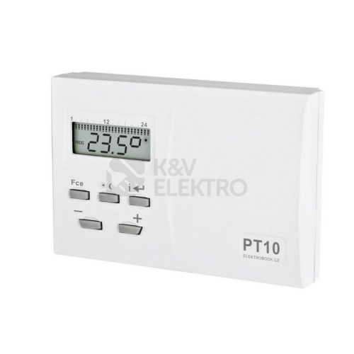 Digitální prostorový termostat Elektrobock PT10 umožňuje automatickou regulaci vytápění s možností nastavení 4 teplotních změn na každý den (minimální nastavitelný časový úsek je 30 minut). Kromě příznivé ceny na něm oceníte i jednoduché ovládání a snadnou montáž. Termostat Elektrobock PT10 s pevnou protizámrazovou teplotou 5 °C má hysterezi 0,5 °C, nastavit lze po 1 °C. Rozsah nastavitelných teplot je + 5 °C až + 39 °C. Stupeň krytí je IP20. Maximální zatížení termostatu je 5 A. Zařízení je napájeno 2 x AA bateriemi (R6), které vydrží jednu topnou sezonu. Podívejte se i na další kvalitní termostaty Elektrobock, případně zvažte pořízení termostatu s dotykovou obrazovkou. Vybírat můžete také z obdobných výrobků značek ABB, Schneider, Elko EP nebo Legrand. Prostorovými termostaty můžete efektivně regulovat například podlahové vytápění, elektrické přímotopy či akumulační kamna. Nezapomeňte si přikoupit kvalitní AA baterie. O společnosti Elektrobock Elektrobock je česká společnost, která vznikla v roce 1992 a od začátku se úzce specializovala na vývoj a prodej spotřební elektroniky pro domácnost. V sortimentu E1.cz najdete například domovní zvonky Elektrobock, termostaty, časové relé či pohybová čidla. Prohlédněte si kompletní sortiment této společnosti, který prodává náš e-shop.