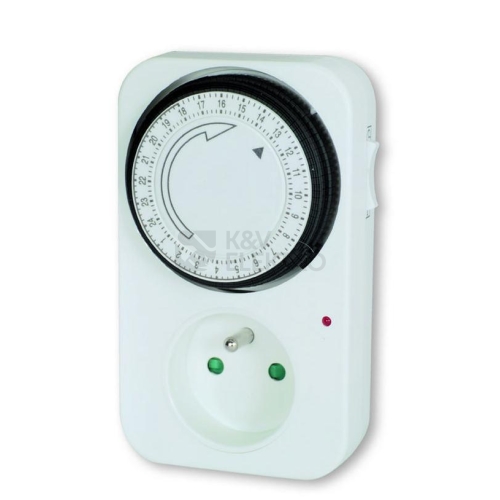 Vlastnosti spínací zásuvky MH24: Pokud potřebujeme zapnout a vypnout spotřebič v určitém časovém rozmezí. Umožňuje funkci trvalého sepnutí zásuvky pomocí dvoupolohového přepínače. Tato funkce je indikována červenou LED diodou na čelní straně přístroje. Slouží pro časové spínání domácích spotřebičů (0–3500 W). Upozornění: SPÍNANÝ NULOVÝ VODIČ! Technické parametry spínacích hodin Napájení 230,0 V / 50 Hz Spínaný vodič nulový Spínaný výkon 3500 W Induktivní zátěž 0 VA až 2 VA Spínací prvek spínací kontakt Min. nastavitelný čas 15 min Zálohovací baterie Ne Stupeň krytí IP20 Pracovní teplota 0 °C až 50 °C