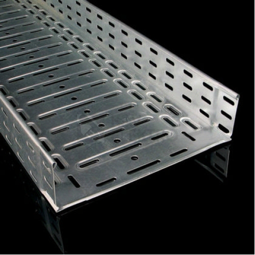 Kabelový žlab s integrovanou spojkou KZI 85x200 z plechu tloušťky 1,00 mm v povrchové úpravě žárový zinek, děrovaný, opatřený embosy pro zvýšení pevnosti a tuhosti.