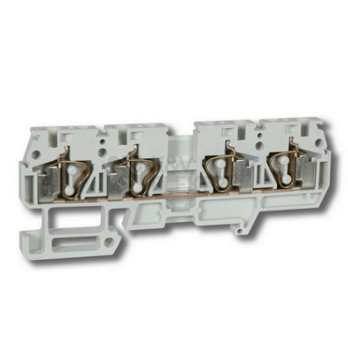 Řadové svorky bezšroubové EURO Q, které jsou určeny pro měděné vodiče průřezů od 0,5 do 6 mm2.Bezšroubové svorky vynikají rychlým a jednoduše proveditelným propojením a současně snadným rozpojením. Elektrický kontakt je srovnatelný se zářezovým kontaktem. Kontakt vznikne tlakem vhodného nástroje (např. plochého šroubováku) na pružinu, tím dojde k jejímu vyhnutí a následnému zasunutí vodiče. Použitím bezšroubových svorek se lze vyhnout závadám, které u klasických šroubových spojů vznikají vinou oteplení, vibrací nebo deformací materiálu.Uchycení svorek je možné na lišty TH 35 x 7,5 a TH 35 x 15. Propojování svorek je možné pomocí bezšroubových zásuvných hřebenů a to do nekonečné řady (do můstku svorky osazené jedním hřebenem je možné zasunout i hřeben sousední, navazující).
