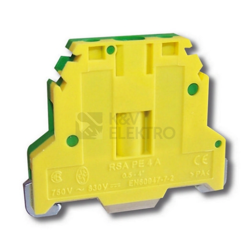 Eshop > Obchodní zboží :: Svorky a svorkovnice :: Svorky řadové a stož :: SVORKOVNICE RSA 4 A PE ZLUTO ZELENA