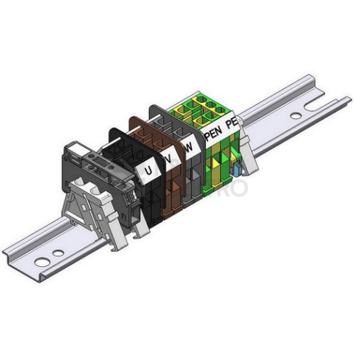 Odbočovací čtyřvodičová svorkovnice s jedním držákem pojistky RSP 4. Složení svorkovnice: 9 x RSA 6 A 1 x RSA PE 6 A Rozměry: A [mm] 55 B [mm] 48 C [mm] 116 C1 [mm] 50 L [mm] 250 • Materiál izolantu polyamid PA 6, hořlavost V0 dle UL 94, bez halogenů • Nadstandardní povrchová úprava spojovacích i elektrovodných částí • Možnost připojení hliníkových i měděných vodičů • Vodivě spojené svorky PE s lištou DIN • Krytí IP 20 bez nutnosti používání příslušenství či krytů (*) • Oddělení fázových svorek středovými přepážkami • Svorky v sestavách svorkovnic jsou označeny popisem • Certifikace státní zkušebny a soulad s normami EU