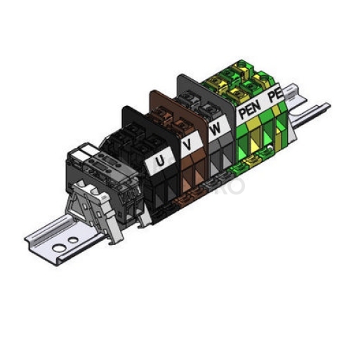 Odbočovací čtyřvodičová svorkovnice s dvěma držáky RSP 4. Složení svorkovnice: 9 x RSA 16 A 1 x RSA PE 16 A Rozměry: A [mm] 55 B [mm] 61 C [mm] 170 C1 [mm] 40 L [mm] 250 • Materiál izolantu polyamid PA 6, hořlavost V0 dle UL 94, bez halogenů • Nadstandardní povrchová úprava spojovacích i elektrovodných částí • Možnost připojení hliníkových i měděných vodičů • Vodivě spojené svorky PE s lištou DIN • Krytí IP 20 bez nutnosti používání příslušenství či krytů (*) • Oddělení fázových svorek středovými přepážkami • Svorky v sestavách svorkovnic jsou označeny popisem • Certifikace státní zkušebny a soulad s normami EU