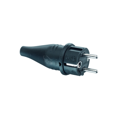 Pryžová zástrčka s ochranným kontaktem, 2pól. + zemnění, 16 A 250 V, podle DIN 49440/441, barva černá, druh krytí s ochranou proti odstřikující vodě IP44, se dvěma zemnicími systémy podle CEE 7/VII, pro připojení do 3x1,5 mm2, řada HOME LINE