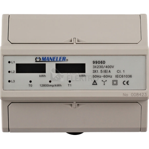 Třífázový dvousazbový elektroměr na lištu DIN, neověřený, LCD, x/5A Konstanta číselníku xs=1