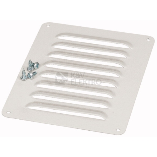 Ventilační desky, umístění ventilačních žeber vodorovně, ocelový plech práškově lakovaný RAL 7035, dodávka s upevňovacím materiálem