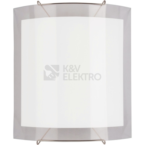 Stropní a nástěnné svítidlo E27 max 2x100W. Skládá se z kovové základny,která je povrchově upravena práškovým plastem, chromových držáků a ohýbanéhoskla čirým lemem. Rozměr skla 320x380 mm EAN: 8590780731864 Krytí: IP20 Hmotnost: 1.60 Kg