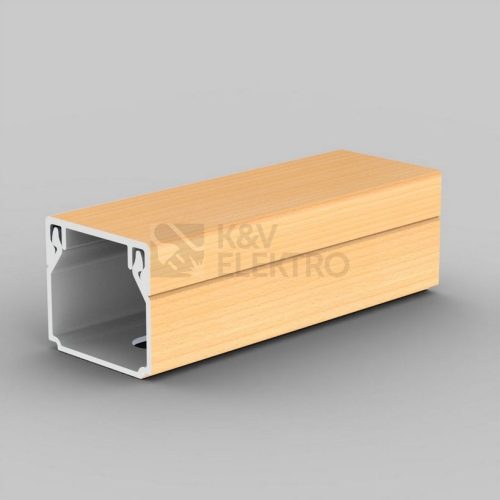 Lišta hranatá 20x20, imitace dřeva - bříza růžová, 2 m, karton. Klasický tvar. Určena pro montáž na stěnu, nebo na strop. Dvojitý zámek víka zvyšuje tuhost lišty a zajišťuje pevnější fixaci víka.