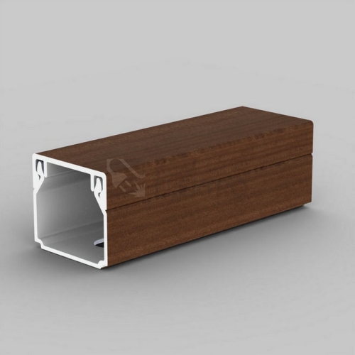 Lišta hranatá 20x20, imitace dřeva - dub tmavý, 2 m, karton. Klasický tvar. Určena pro montáž na stěnu, nebo na strop. Dvojitý zámek víka zvyšuje tuhost lišty a zajišťuje pevnější fixaci víka.